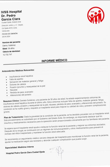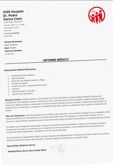 2024 - We paid the medication costs for a patient, Daniela Gutierrez in Venezuela in need of a kidney transplant. She survives today.